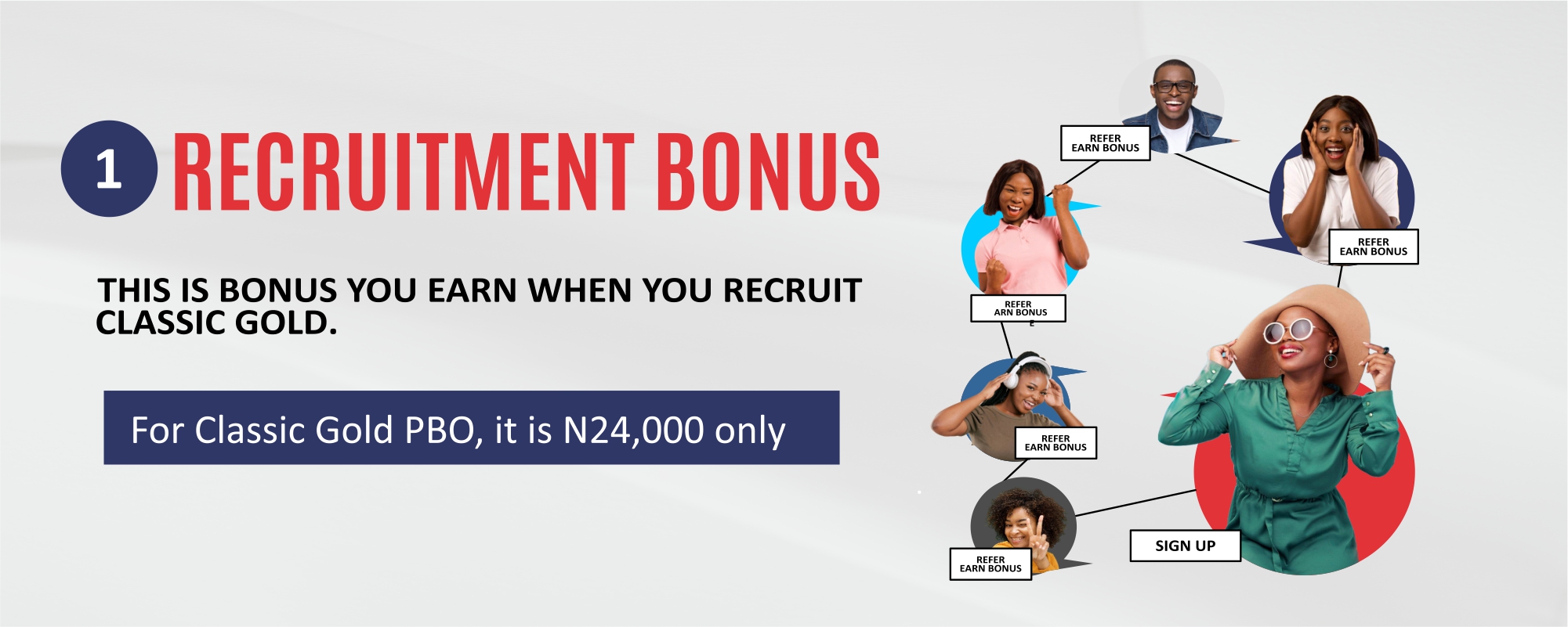 In this setup, each participant can directly recruit or enroll up to five people.
